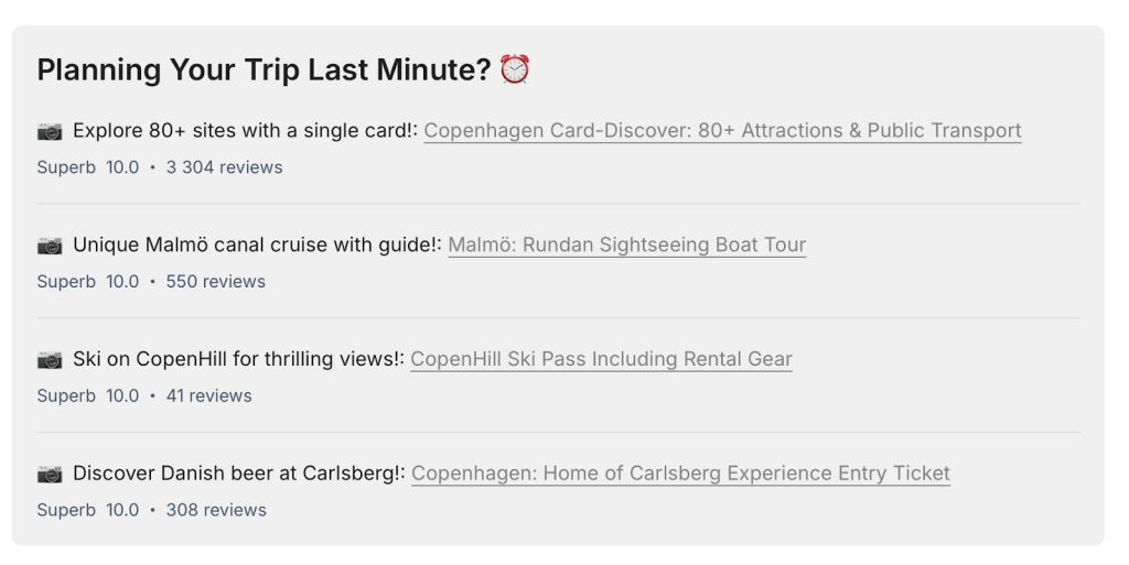 Danny is a big fan of Travelpayouts Emerald tool, which uses AI to automatically display relevant tours and experiences within his articles.