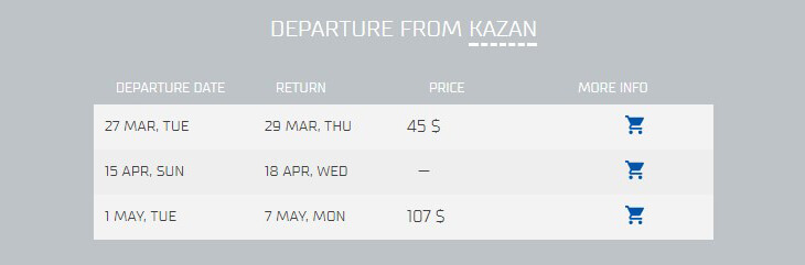 The widget allows you to display a block with prices in a predefined destination for specific dates on your site. The departure airport is automatically filled from the user’s location by default, but the user has the option to change the departure airport manually in the widget.