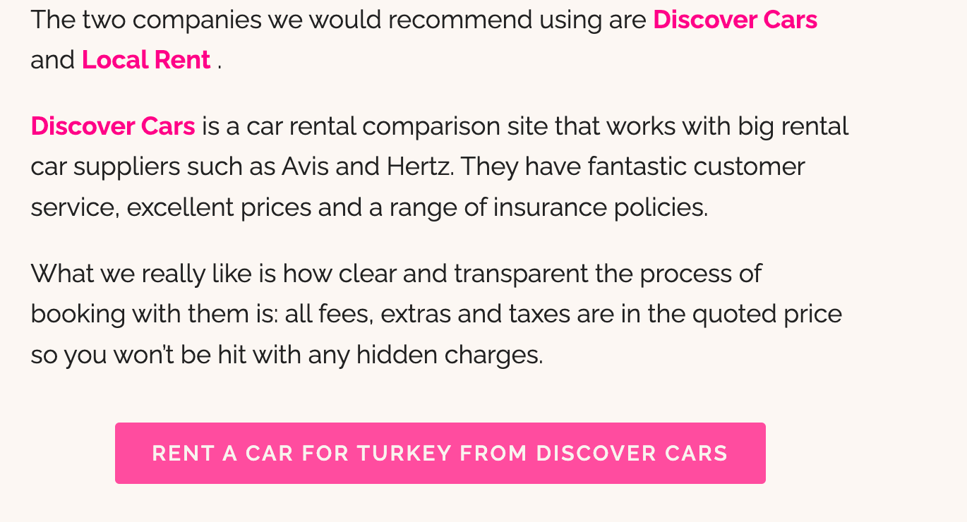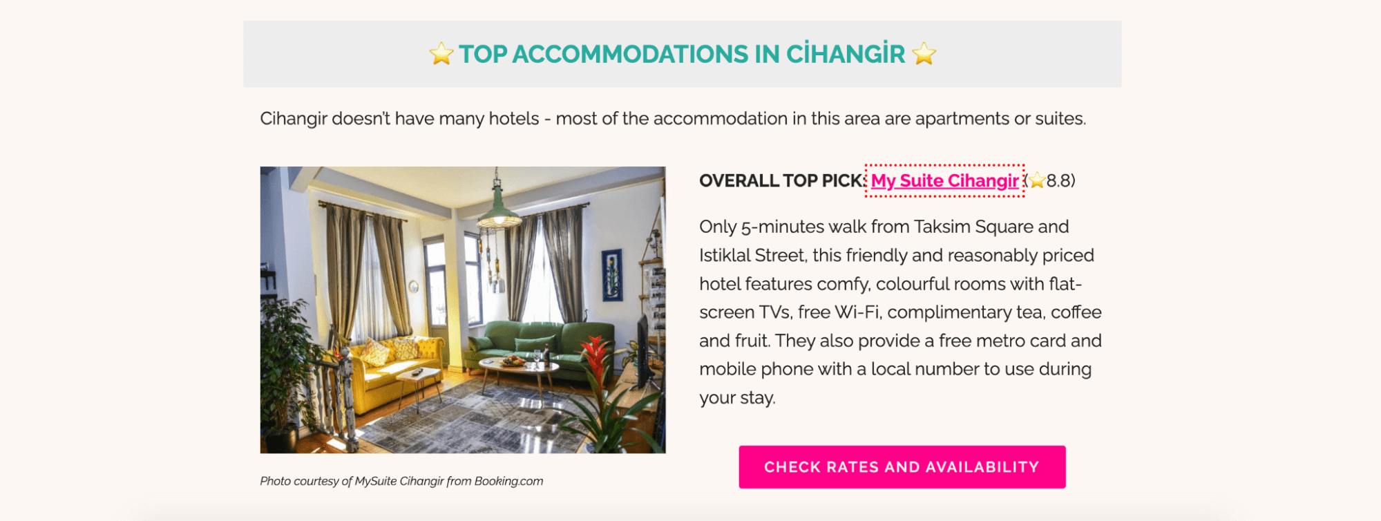 My best month brought nearly €3,000 from Travelpayouts affiliates alone, mainly through Booking.com and GetYourGuide. I include text and button links throughout my posts, often adding a “quick booking box” near the top for readers who just want to skim. I also use clear CTAs (calls to action) to encourage people to click.