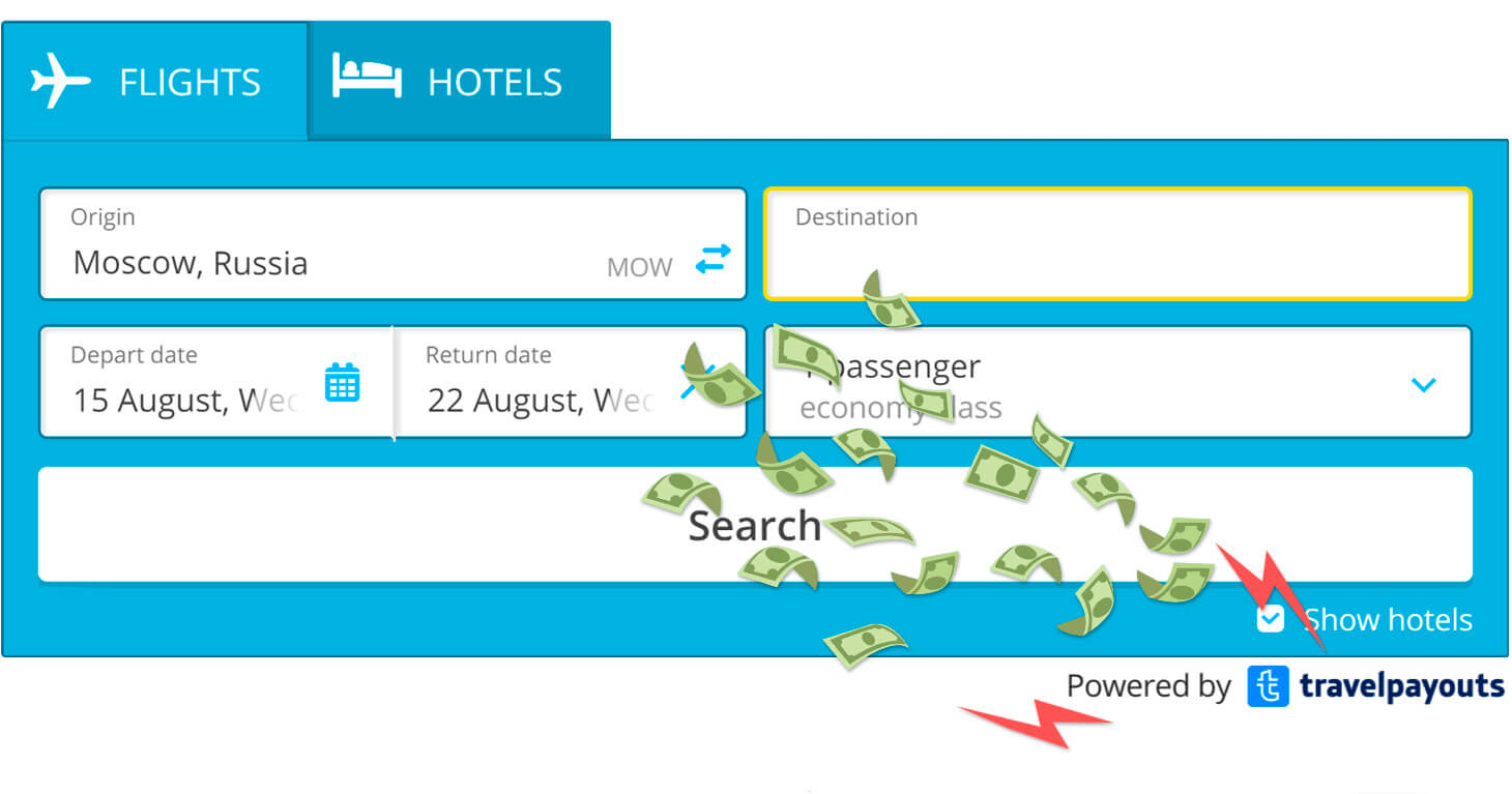 We have launched a new feature for automatic referral attraction in Travelpayouts. It does not require any action from you. All you have to do is activate the “Powered by Travelpayouts” label on your dashboard under the widgets. Code replacement is not required, and the function is turned on and off via the dashboard. The inscriptions contain a link with your affiliate marker for registration on the Travelpayouts network.