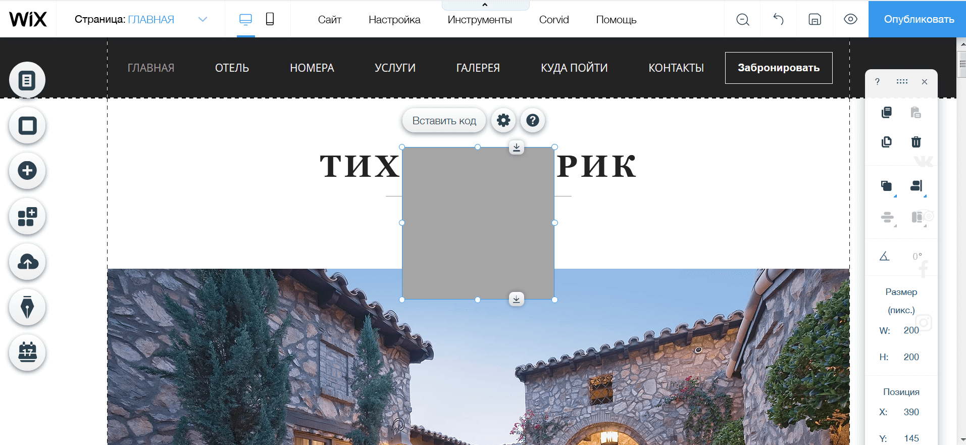 - Вставка HTML кода.