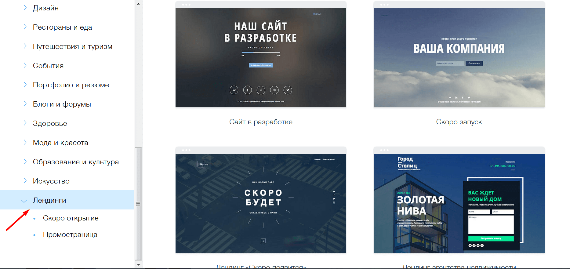 Основные виды лендингов