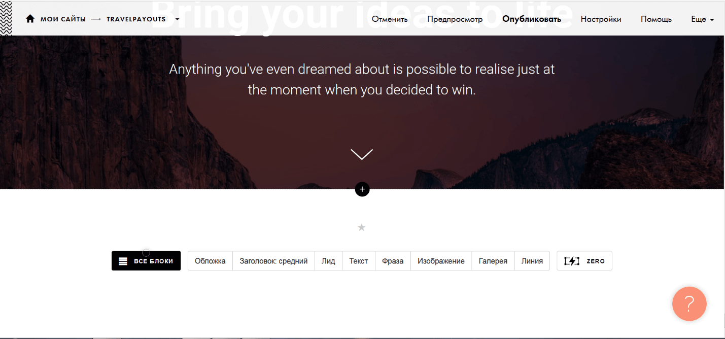 Об этой бесплатной платформе для создания сайта не знают разве что ленивые или совсем «зелёные» веб-мастера. В интернет-среде прочно сформировалось мнение, что Tilda — самый удобный и доступный конструктор. В Рунете известные и начинающие стартапы предпочитают иметь дело только с Тильдой. Интерфейс панели управления современный, важные модули выносятся на передний план с помощью анимации.