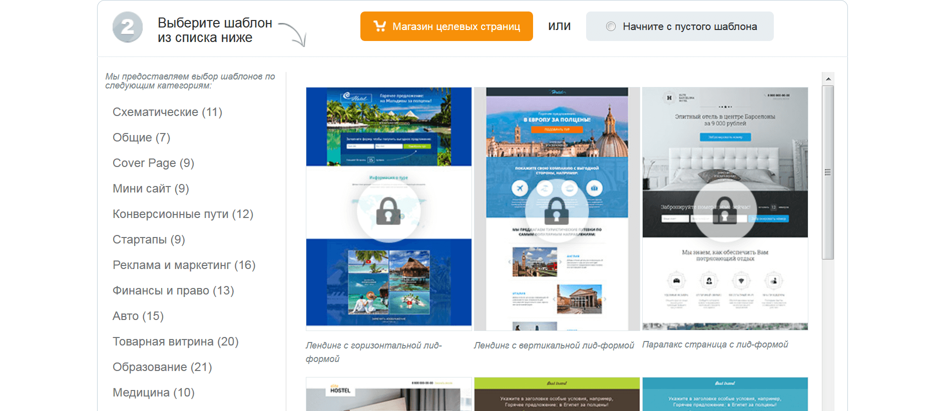 - Неограниченное количество доменов для создания одностраничников.