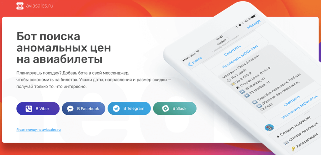 Расскажите своим читателям про бота и разместите в посте ссылку с вашим маркером: https://bot.aviasales.ru/?marker=XXXXX (где XXXXX — ваш ID номер). Пусть пользователи сами выберут нужные направления, продолжительность отдыха и размер скидки. Все бронирования, сделанные с помощью бота, вам зачтутся.