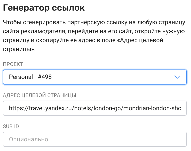 В таком случае вы можете создать партнёрскую ссылку на любую страницу сайта бренда с помощью генератора.