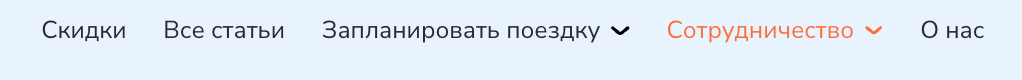 • Вынести в верхнее меню основные тревел-тематики: авиабилеты, экскурсии, отели, аренда авто, туры.
