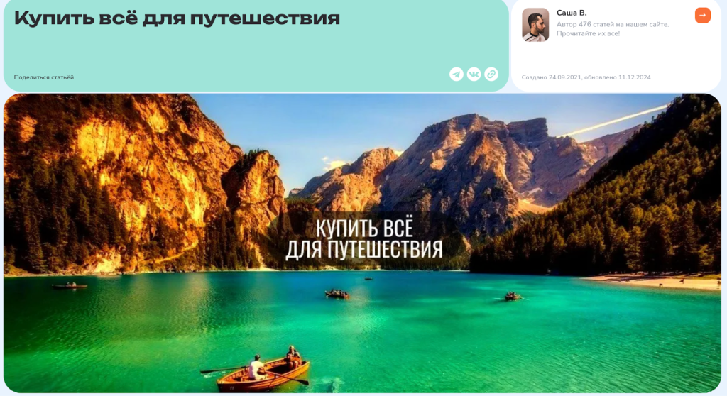 • Особенности контента — сайт позиционируется как сообщество путешественников, статьи пишут разные авторы.