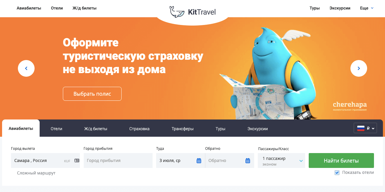 Так вы сможете конвертировать больше посетителей. Кто-то не нашёл подходящие по стоимости авиабилеты, но, вероятно, решит отправиться в путешествие на поезде или приобрести пакетный тур, который часто выходит дешевле, чем самостоятельное путешествие. Кто-то уже купил авиабилеты и задумался о получении страховки для визы.