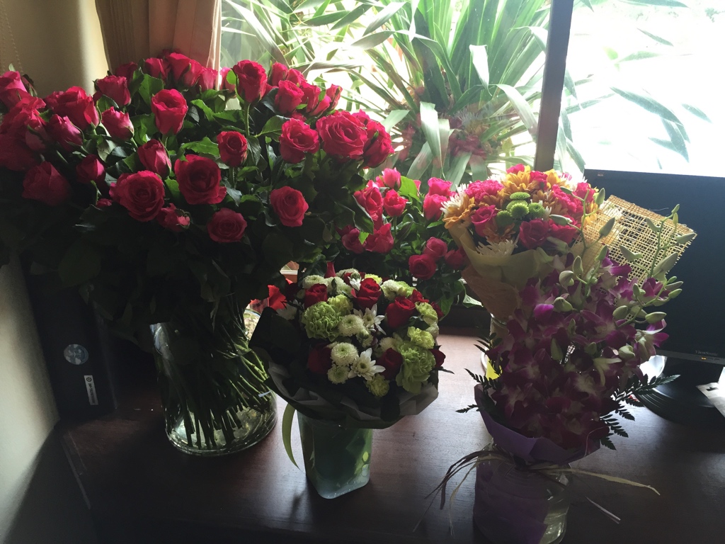Однажды, коллега прислал мне письмо: «Нужно этим перцам запилить договор. Можешь сразу Сергею запулить его». Я и запулила ответом на это письмо, просто заменила адрес получателя. А исходное сообщение осталось. Так что эти «перцы» теперь знают всю правду о себе. А еще в этом году на меня обрушилось цветочное безумие от коллег. Будучи в России, сначала на 8 марта я получаю огромнейший букет цветов. Потом на день рождения букет от моих друзей из Таиланда и от компании. А, вернувшись в середине апреля на Пхукет, нахожу свой рабочий стол заставленный цветами. Это было так приятно!
